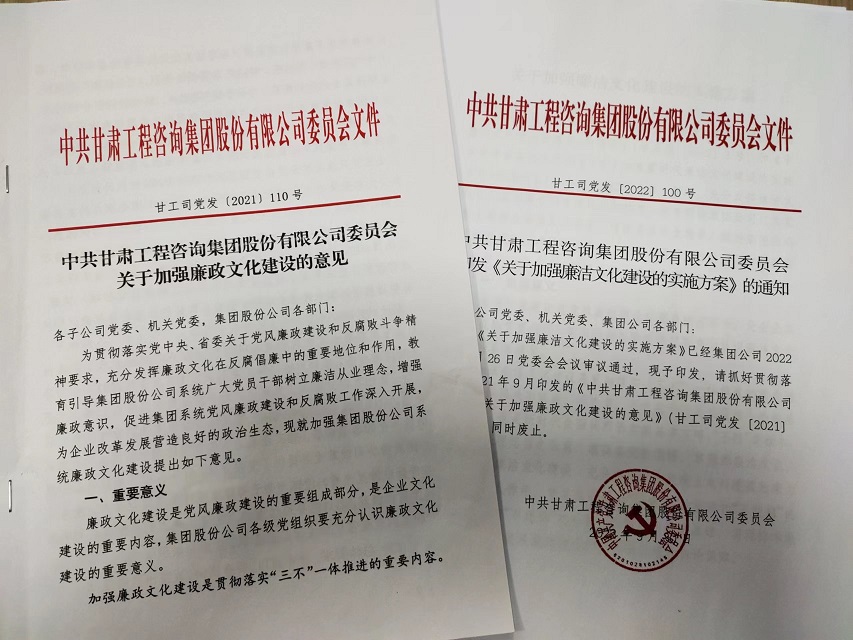 甘肅工程咨詢集團(tuán)深入推進(jìn)廉潔文化建設(shè)持續(xù)增強(qiáng)“不想腐”的思想自覺