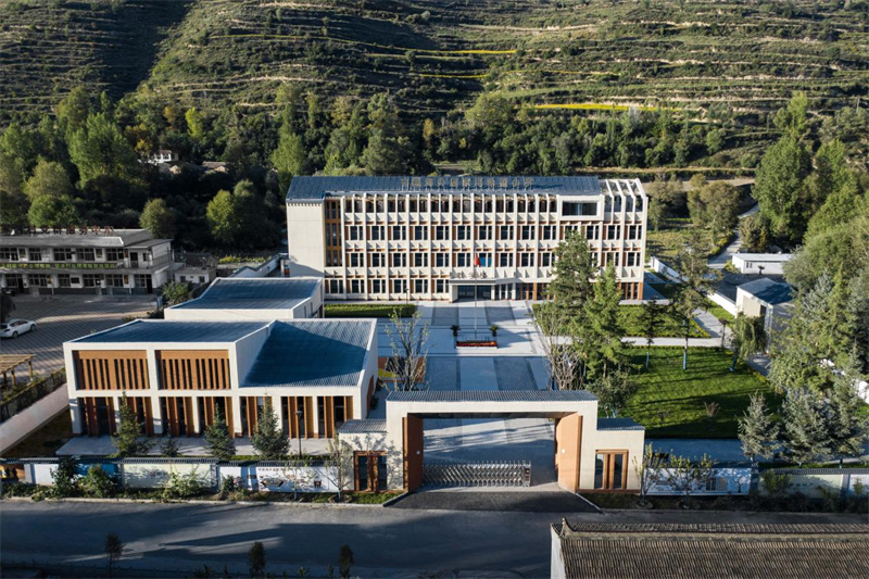 中國海外溫家河希望小學項目綜合考量環(huán)境、功能、空間、外立面等因素,呈現(xiàn)了當?shù)貍鹘y(tǒng)民居的二合院樣式,充分展現(xiàn)了臨夏特色的建筑藝術特征。