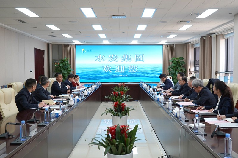 在水發(fā)集團(tuán),張佩峰一行與水發(fā)集團(tuán)董事、總經(jīng)理莊建,黨委委員、副總經(jīng)理王曉川及相關(guān)產(chǎn)業(yè)板塊負(fù)責(zé)人座談交流。莊建介紹了水發(fā)集團(tuán)發(fā)展歷程、戰(zhàn)略布局及改革轉(zhuǎn)型成效。雙方圍繞戰(zhàn)略發(fā)展與核心布局、業(yè)務(wù)運(yùn)營(yíng)與項(xiàng)目經(jīng)驗(yàn)、合作模式與協(xié)同潛力、高層次人才培養(yǎng)引進(jìn)等方面進(jìn)行深入交流。雙方表示,將以此次座談為契機(jī),進(jìn)一步加強(qiáng)溝通對(duì)接,充分發(fā)揮各自資源稟賦與專業(yè)優(yōu)勢(shì),在相關(guān)領(lǐng)域探索多元化合作模式,實(shí)現(xiàn)優(yōu)勢(shì)互補(bǔ)、協(xié)同發(fā)展、互利共贏??疾旖M還參觀了該集團(tuán)展廳,詳細(xì)了解企業(yè)發(fā)展歷程、組織建設(shè)、產(chǎn)業(yè)布局、重點(diǎn)項(xiàng)目、科技創(chuàng)新等情況。