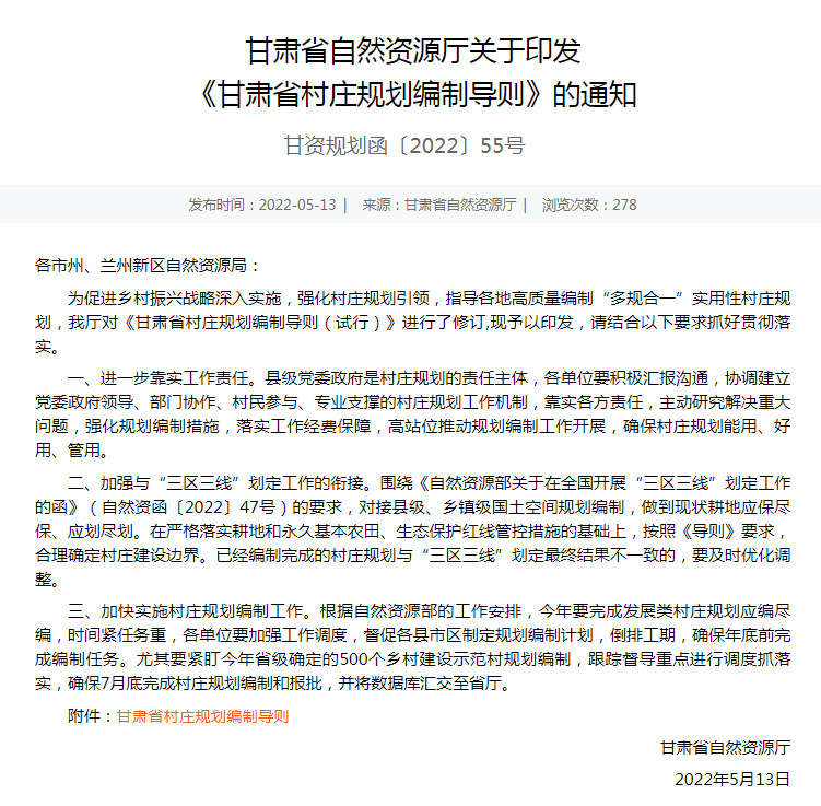 2022年3月以來,在全面總結(jié)我省村莊規(guī)劃編制經(jīng)驗(yàn)的基礎(chǔ)上,省自然資源廳組織規(guī)劃設(shè)計(jì)院等14家規(guī)劃研究機(jī)構(gòu),堅(jiān)持“整體穩(wěn)定、局部微調(diào)、完善提升”的原則,對(duì)《甘肅省村莊規(guī)劃編制導(dǎo)則(試行)》進(jìn)行了修訂,重點(diǎn)將《導(dǎo)則》試行以來國(guó)家、我省對(duì)村莊規(guī)劃編制的新要求、新政策,以及村莊規(guī)劃試點(diǎn)工作中值得推廣的經(jīng)驗(yàn)方法融入其中,指導(dǎo)地方精準(zhǔn)化編規(guī)劃、差異化編規(guī)劃、用管結(jié)合編規(guī)劃、多方參與編規(guī)劃、精簡(jiǎn)結(jié)合編制規(guī)劃。