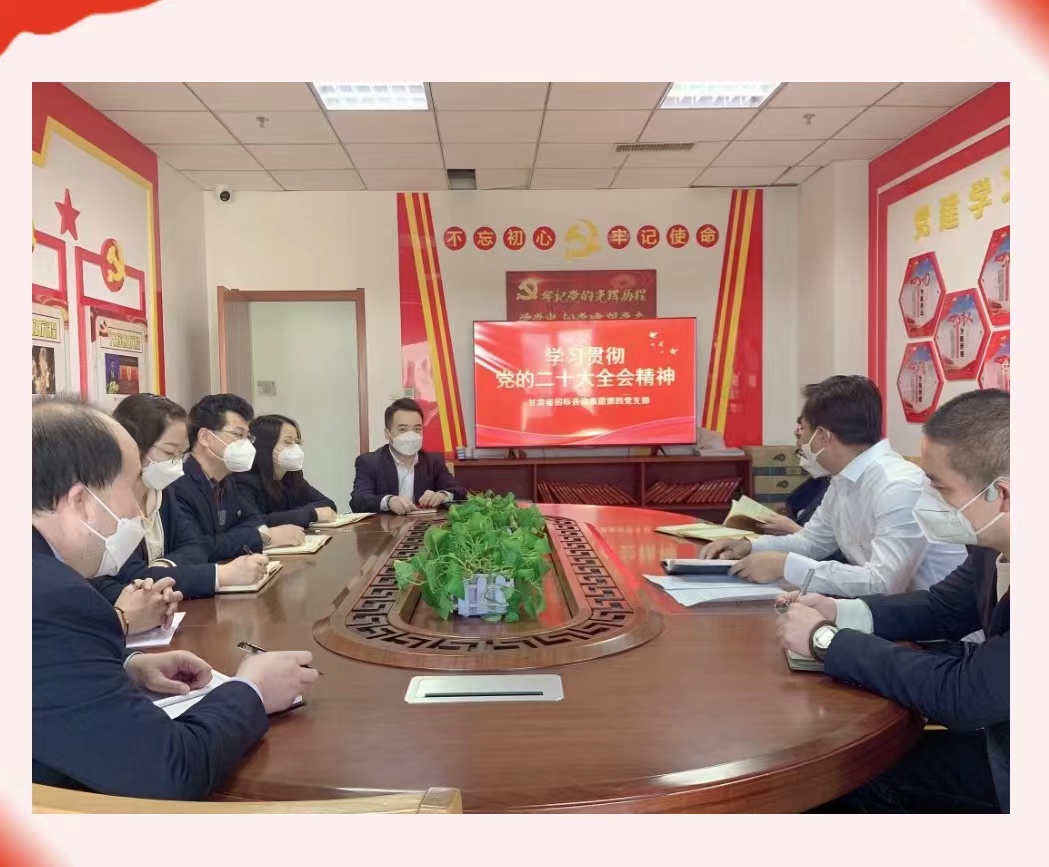 黨的二十大勝利召開以來,甘肅省招標(biāo)咨詢集團(tuán)有限責(zé)任公司黨委高度重視,將學(xué)習(xí)宣傳貫徹黨的二十大精神作為當(dāng)前和今后一個(gè)時(shí)期的首要政治任務(wù),通過多形式、全覆蓋的方式,積極抓好貫徹落實(shí),持續(xù)推動黨的二十大精神轉(zhuǎn)化為加快各項(xiàng)工作高質(zhì)量發(fā)展的強(qiáng)大動力,努力促使黨的二十大精神在招標(biāo)咨詢集團(tuán)迅速落地生根、開花結(jié)果。