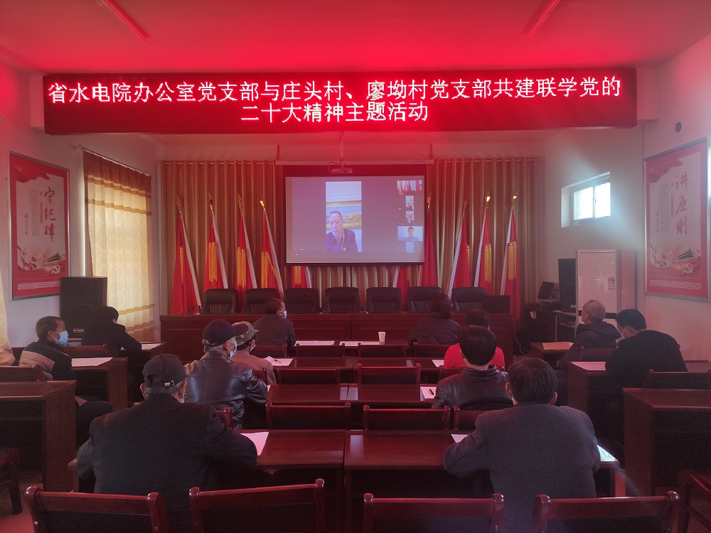 為持續(xù)促進(jìn)黨的二十大精神學(xué)習(xí)貫徹走深走實(shí),使黨的二十大精神進(jìn)村入戶、深入人心,11月22日,甘肅省水利水電勘測(cè)設(shè)計(jì)研究院有限責(zé)任公司辦公室黨支部與幫扶村西峰區(qū)莊頭村黨支部、廖坳村黨支部開展共建聯(lián)學(xué)黨的二十大精神主題活動(dòng)。
